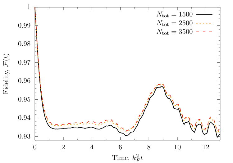 $ {\cal F}(t) = |\langle\Psi_i|\Psi_i(t)\rangle|^2 $