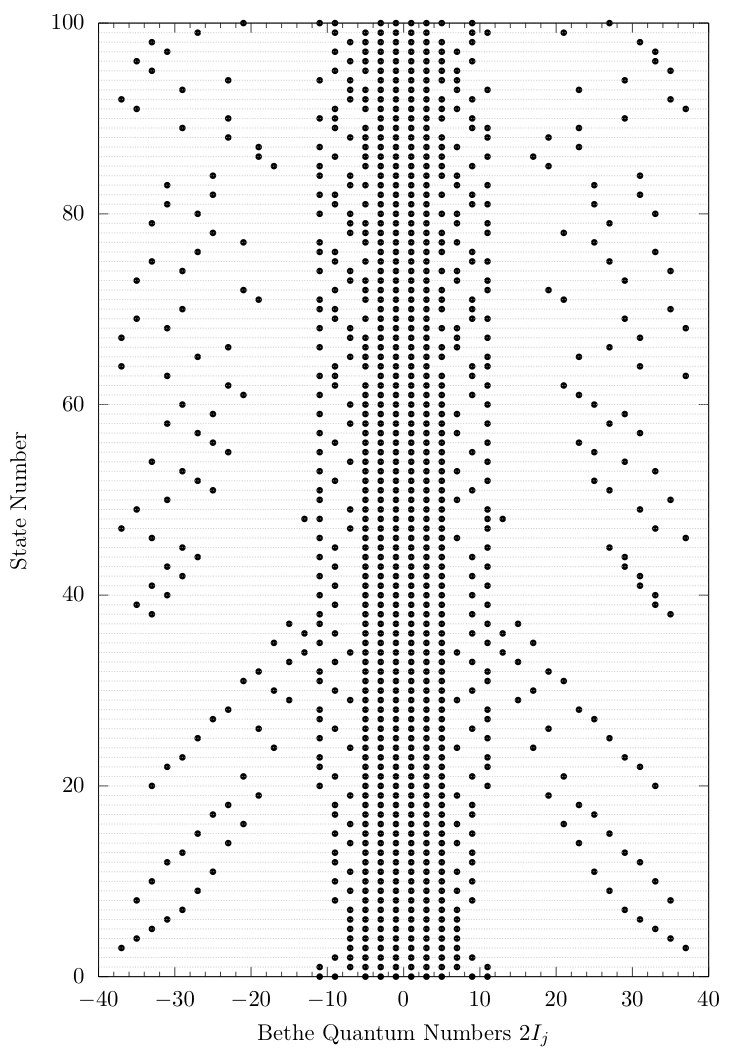 $ \ln \eta(\lambda) = g(\lambda) - h - \int_{-\infty}^\infty \frac{d\lambda'}{2\pi} K (\lambda - \lambda') \ln \left[ 1 + \eta^{-1}(\lambda') \right], $
