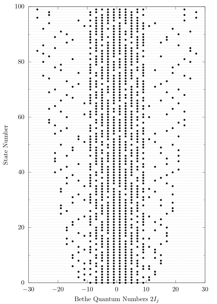 $ e^{\mathrm{i}\lambda_j L} = \prod_{\substack{{\tiny l=1} \\ {\tiny (l\neq j)}}}^{\tiny N} \frac{ \lambda_j - \lambda_l + \mathrm{i}c}{\lambda_j - \lambda_l - \mathrm{i}c} $